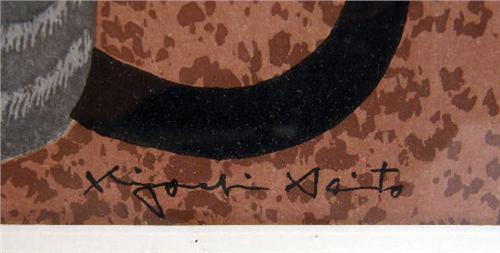 (Japanese, 1907-1997). Circa 1950, signed and with artist`s chop l.r.c. On wove paper, with full margins. Sight size 14"h x 8 3/4"w