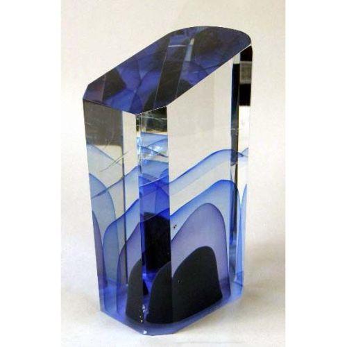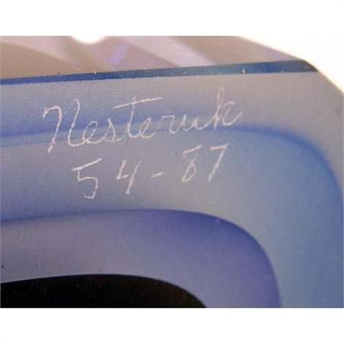 A COLORLESS AND COBALT BLUE GLASS SCULPTURE<BR><BR>Signed underside "Nesteruk," 9"h