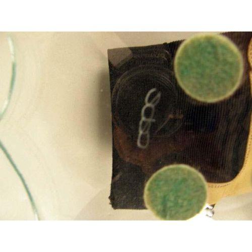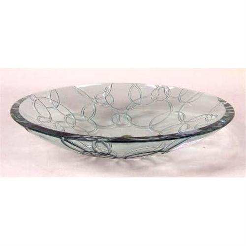 A COLORLESS ART GLASS BOWL<BR><BR>With a green tint, circle decoration, "Sobo(?)" 2 3/4"h x 13 1/4"dia.