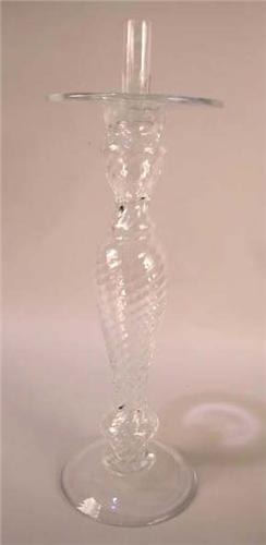 A COLORLESS GLASS CANDLESTAND; A cylindrical swirl form stem on circular base 18"h