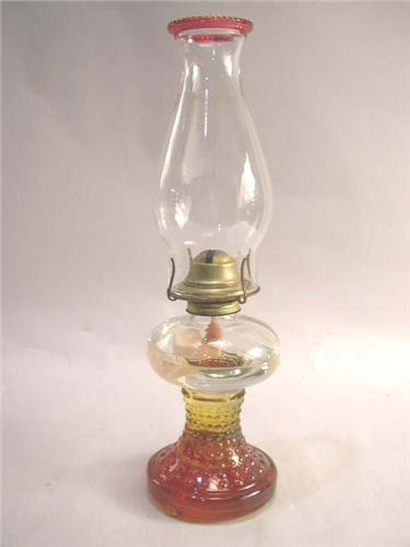 A COLORLESS GLASS HOBNAIL OIL LAMP;