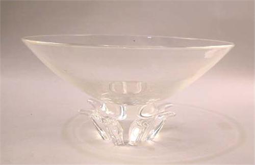 A COLORLESS GLASS STEUBEN CENTERPIECE BOWL; On figured base