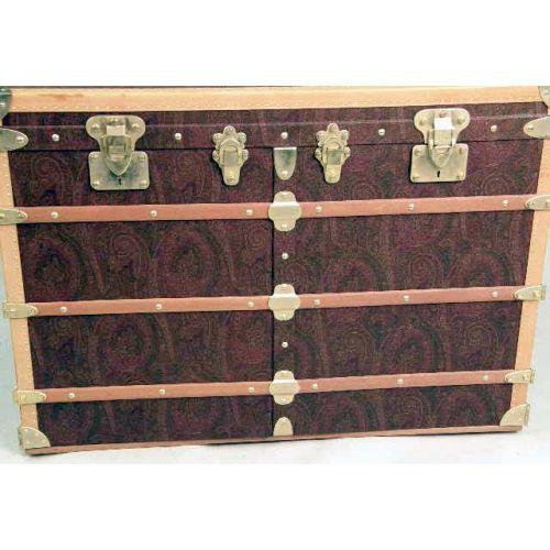 A CONTEMPORARY BRASS MOUNTED AND FABRIC COVERED TRAVELING TRUNK<BR><BR>The interior with several drawers, made by Etro