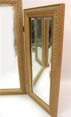 20 1/2"h x 32"w (open) One side panel separated, two hinges missing screws.