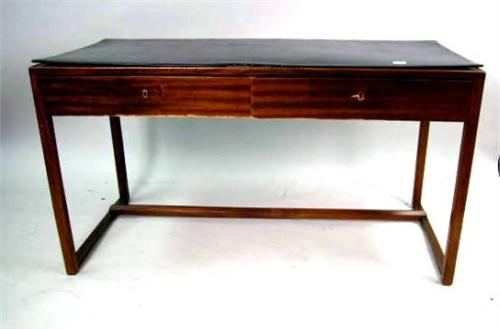 A CONTEMPORARY LEATHER TOP OFFICE DESK; Together with a matching arm chair