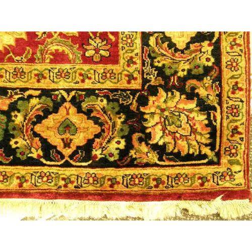 A CONTEMPORARY PERSIAN RUG<BR><BR>With dark red ground, floral medallion overall decoration, 6` x 9`. Together with a contemporary Indian Oriental style rug, 11` x 8`