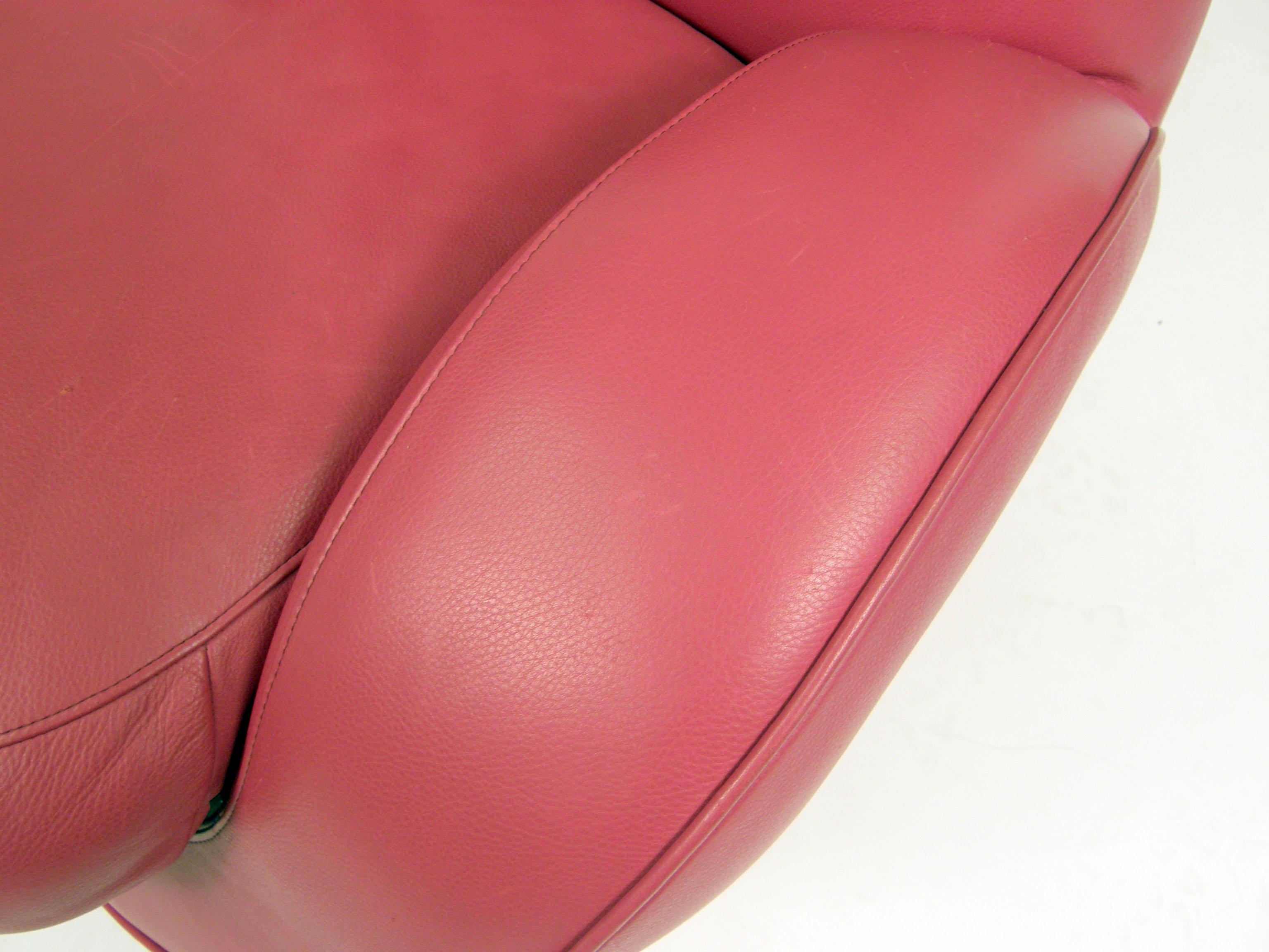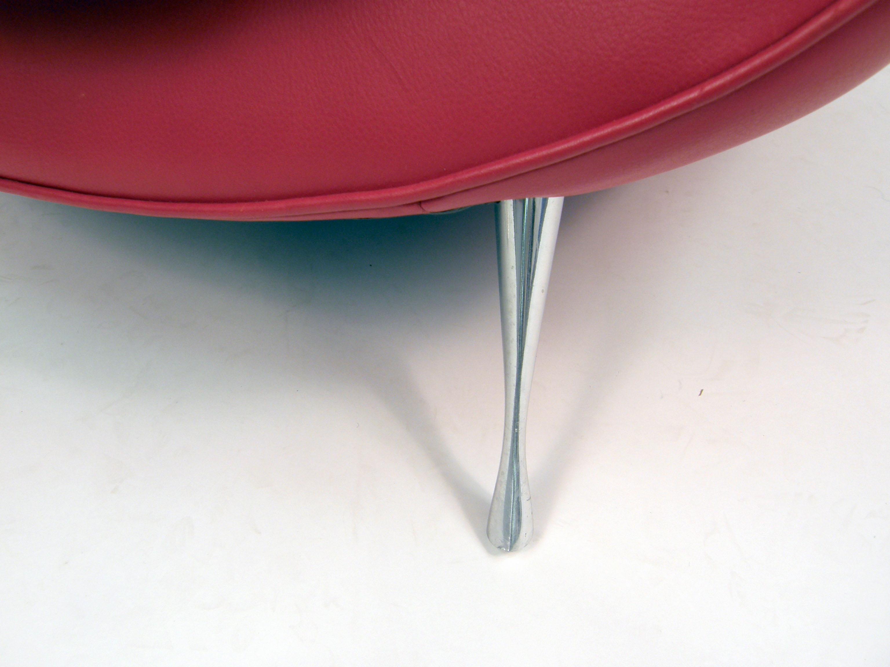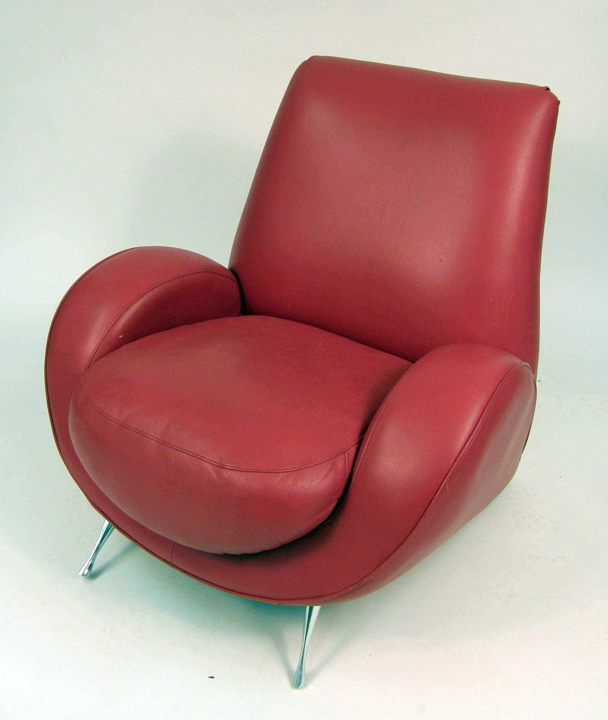 A CONTEMPORARY RED LEATHER AND CHROME EASY CHAIR
