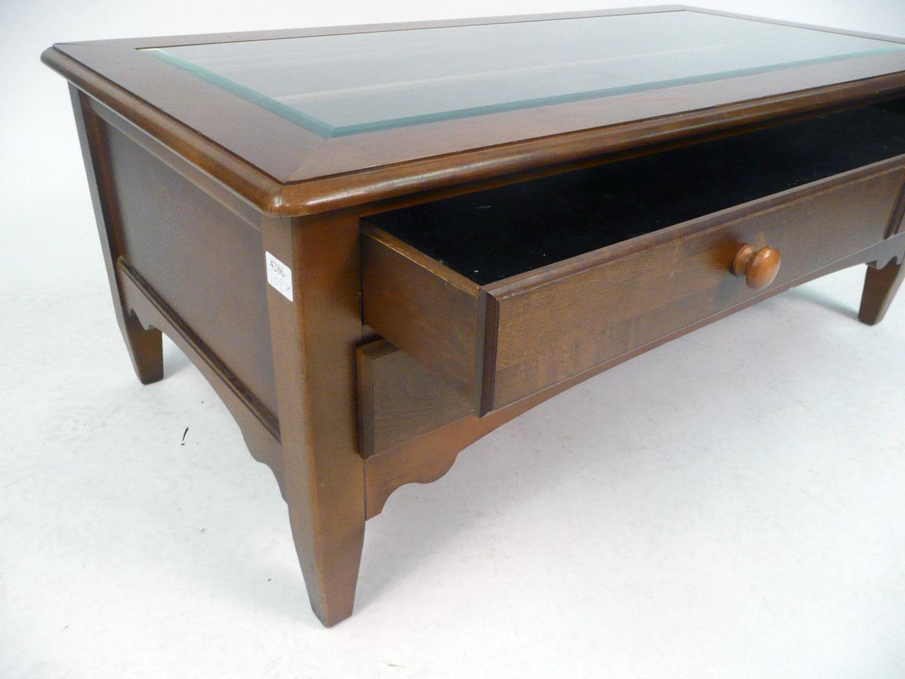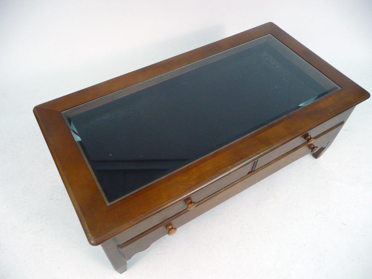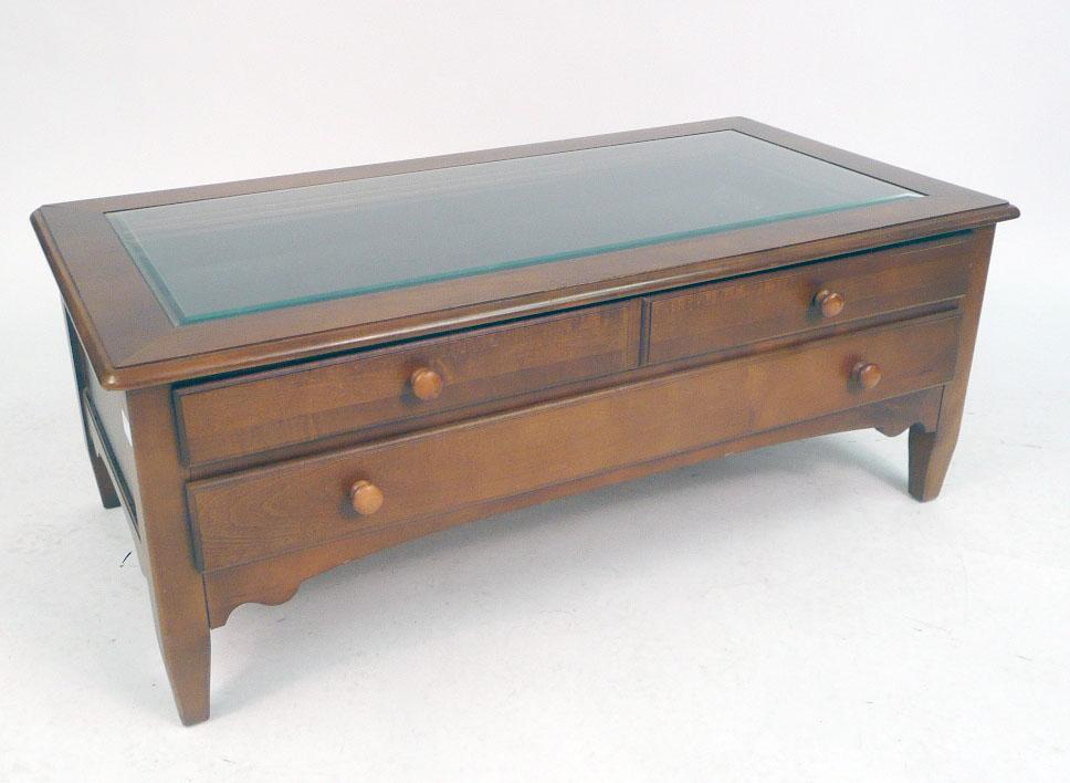 A CONTEMPORARY STAINED MAPLE VITRINE TABLE WITH DRAWERS