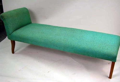 A CONTEMPORARY TWO-PIECE DAYBED; Upholstered in green, resting on straight tapering legs