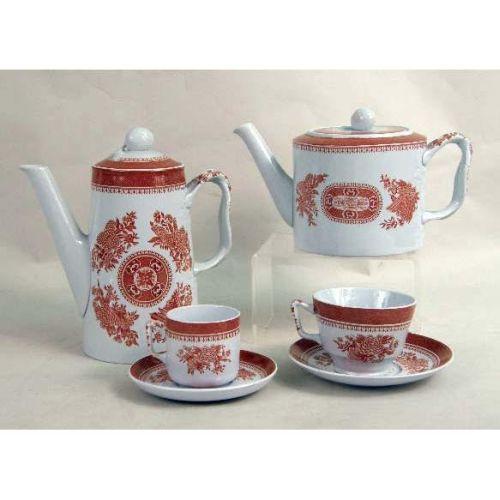 A COPELAND SPODE PORCELAIN TEA SERVICE<BR><BR>in the "Fitzhugh" pattern. Comprising a covered teapot, fourteen cups, and seventeen saucers. Together with a matching coffee service, comprising a coffee pot, eleven cups and nine saucers, losses and chips throughout.