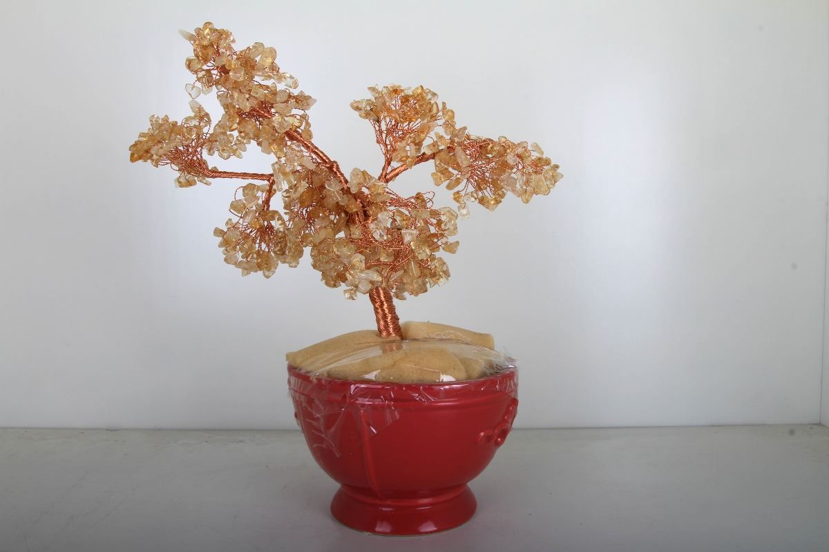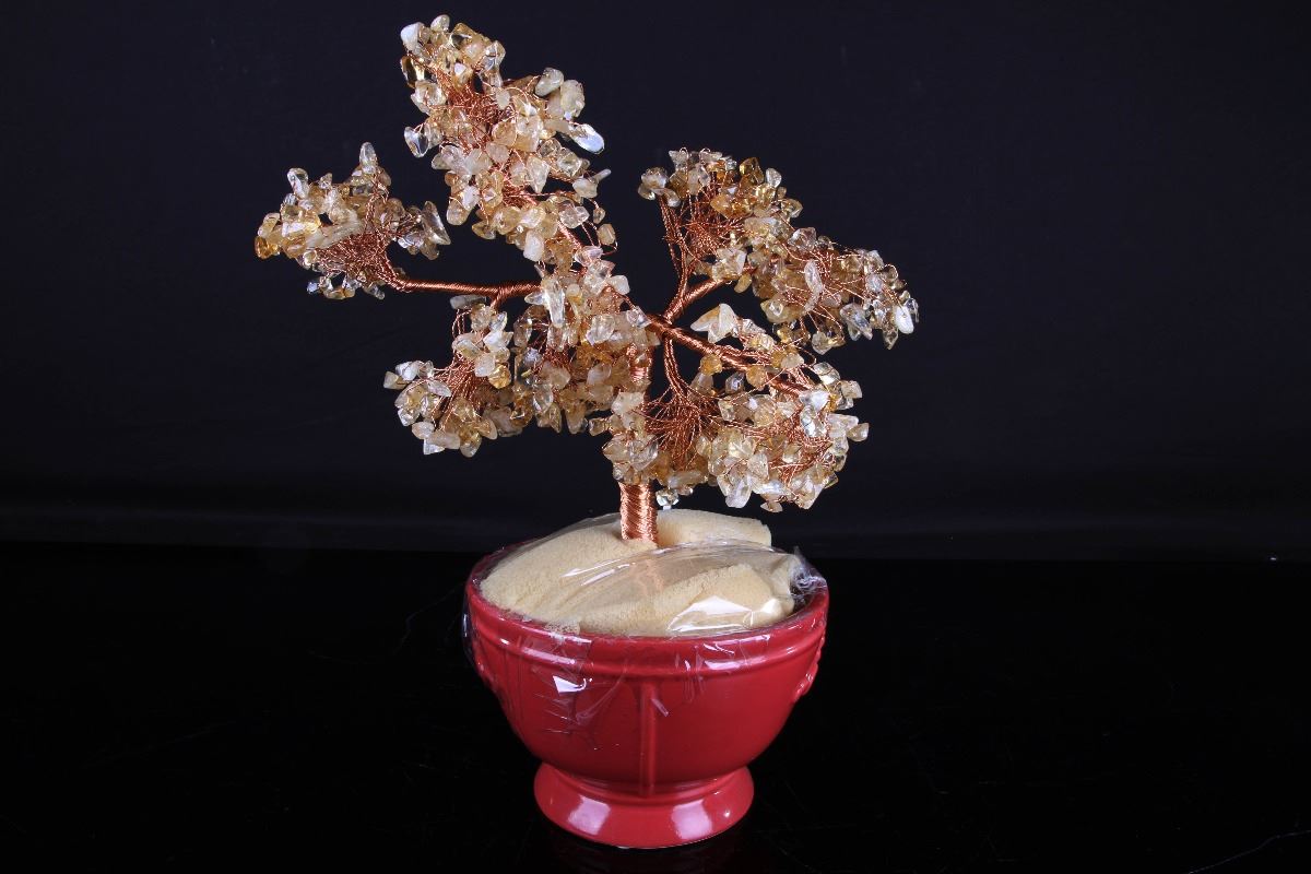 A CRYSTAL CARVED FORTUNE TREE ORNAMENT H:12"(MEASURED WITH THE POT)水晶招财树摆件(带底座高度)