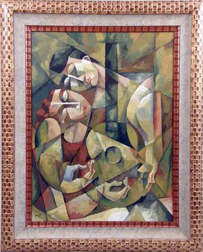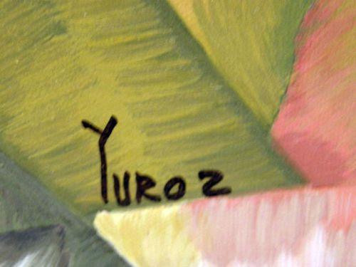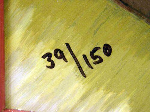 Lover`s Serenade, depicting a man, woman, and a guitar, signed l.r. Yuroz (Yuri Gevorgian Yuroz, Armenian-American, b. 1956), numbered 35/150. 39 1/4"h x 29 1/2"w