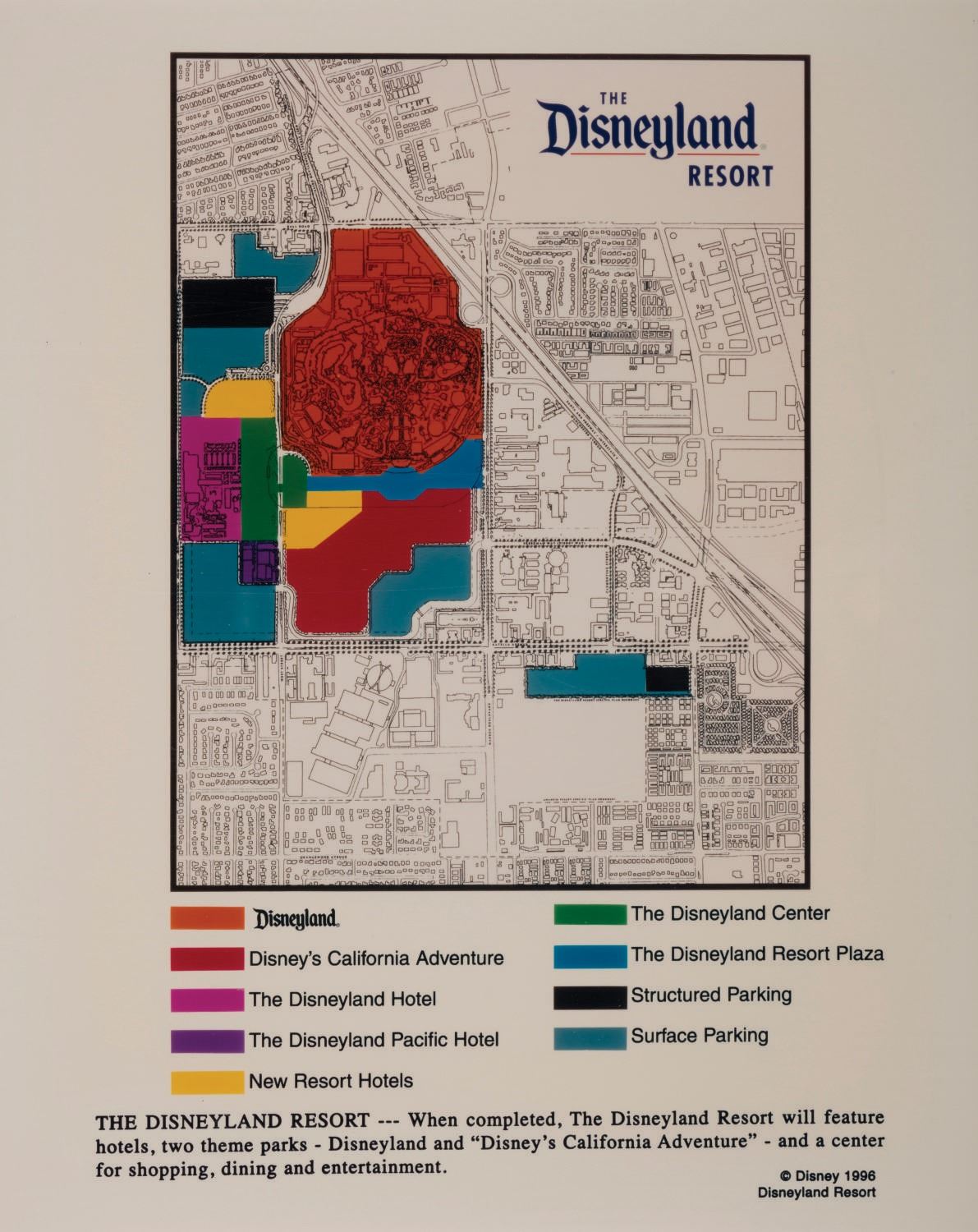 (California Adventure, 2001) A press packet released prior to the opening of Disney's California Adventure. The folder includes (8) slides with concept art and more, along with promotional photos of the same images. Also included are (9) press releases and a brochure detailing the features of the new Disneyland Resort. Overall the packet measures 12.25"x9". The interior contents are in very good condition with minimal wear, while the folder itself is in fair condition. There is a 1.5" tear at the lower right, surface scuffing, and staining along the fold at the top left.