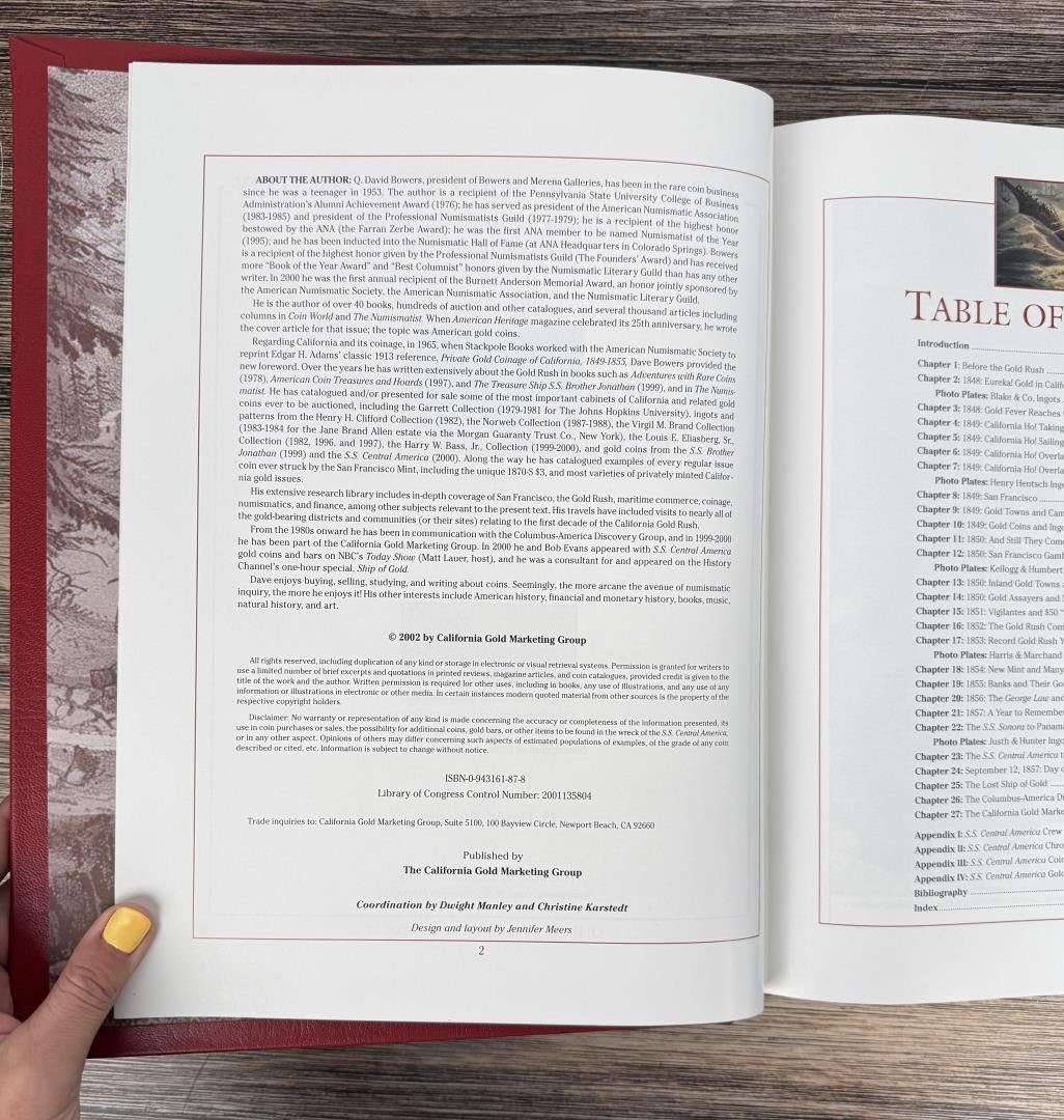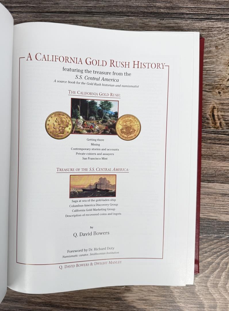 Featuring the Treasure from the S.S. Central America. Q. David Bowers. 2002. Limited Edition 116 of 400. Comes with Gold Dust from the S.S. Central America as shown. California Gold Marketing Group.