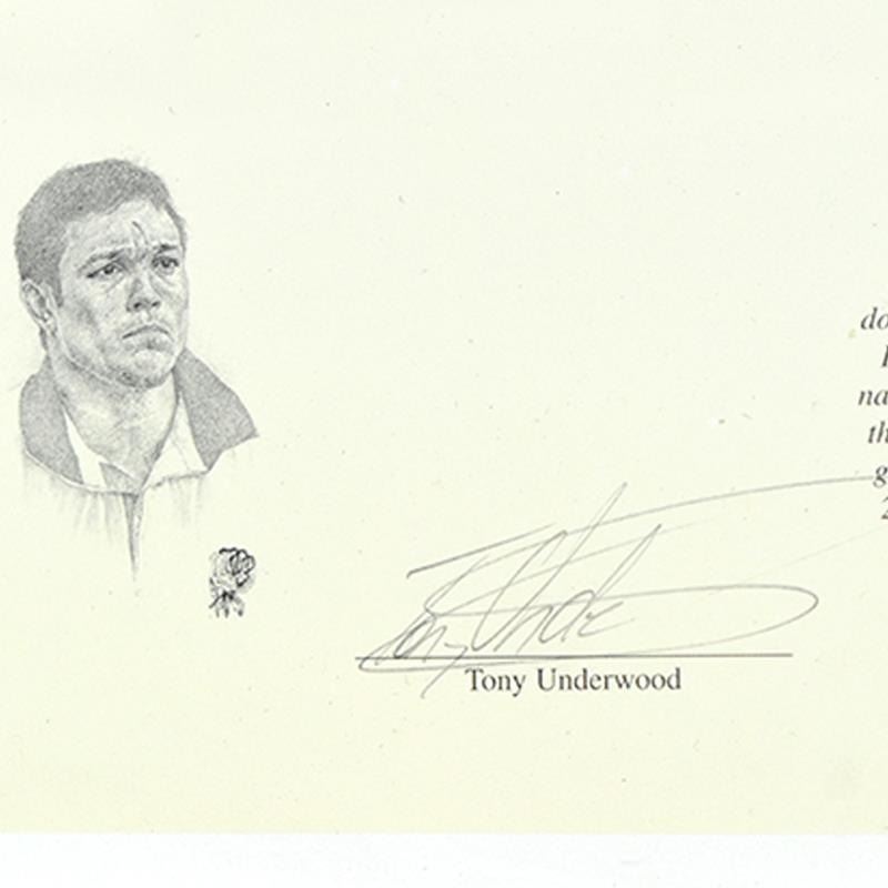 "A Call to Arms" is a limited edition lithograph on paper by Stephen Doig, numbered and hand signed by the artist and team members Tony Underwood and Will Carling. This piece celebrates England's 1997 exhilarating win over Wales, 34-13 at Cardiff Arms Park. Measures approx. 26.5" x 29.5" (image). Please note: due to the age of this piece there might be minor imperfections in the white border area or corners of the paper.