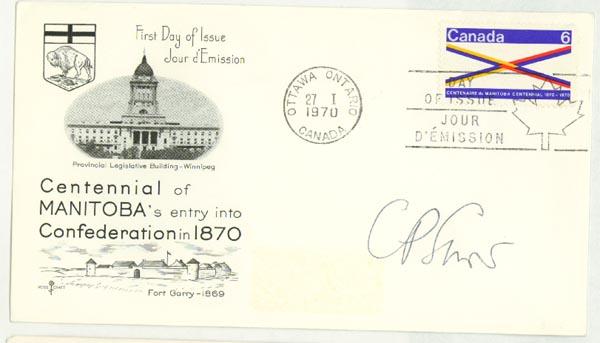 LORD CHARLES PERRY SNOW. SFDC. 6 1/2" x 3 1/2". n.p. n.d. A Canadian first day cover signed by "C.P. Snow" in black ink. It is in choice condition.