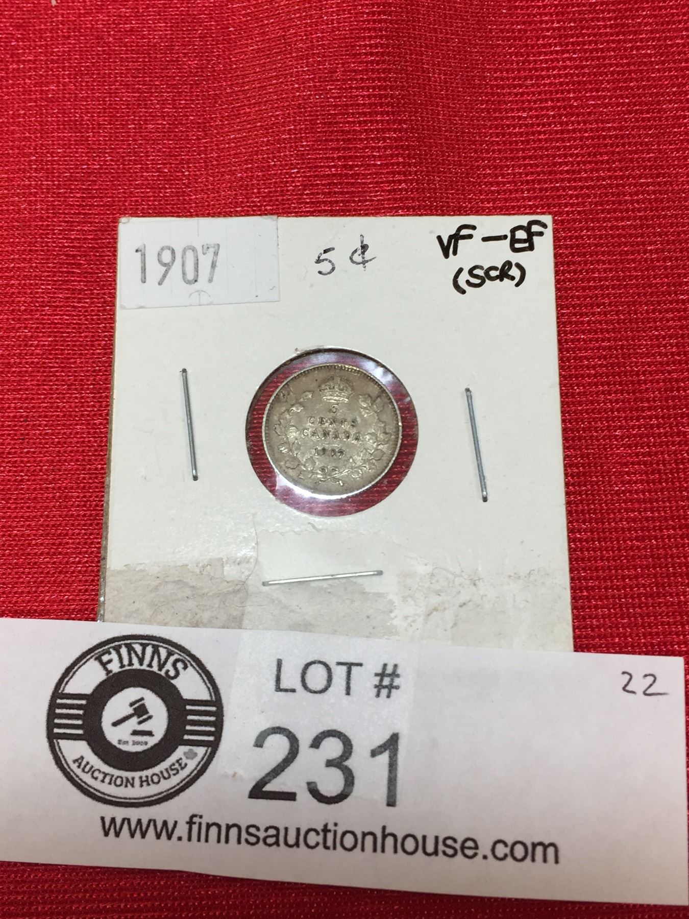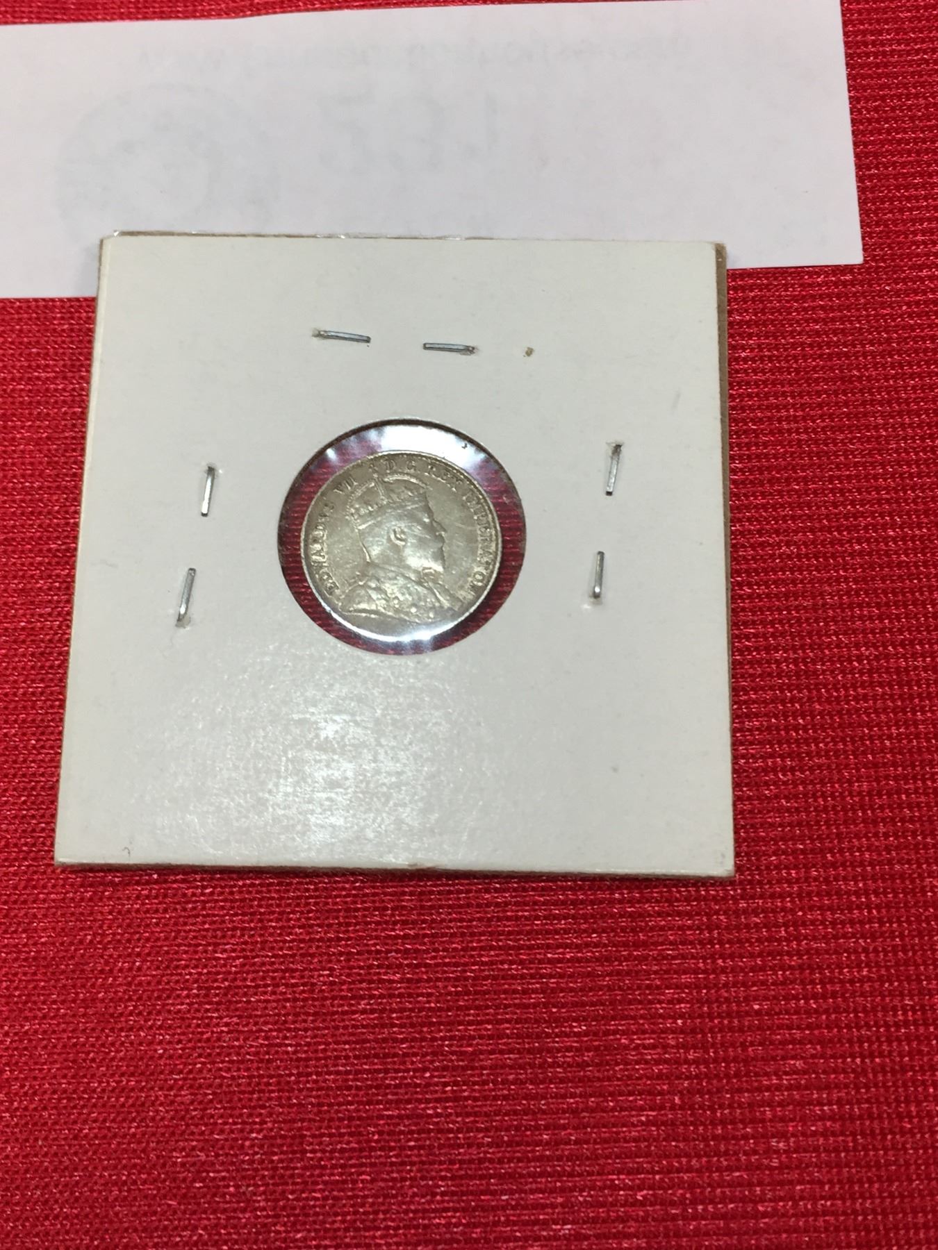 A Canadian Silver 5 Cent Coin from 1907 In A Coin Holder