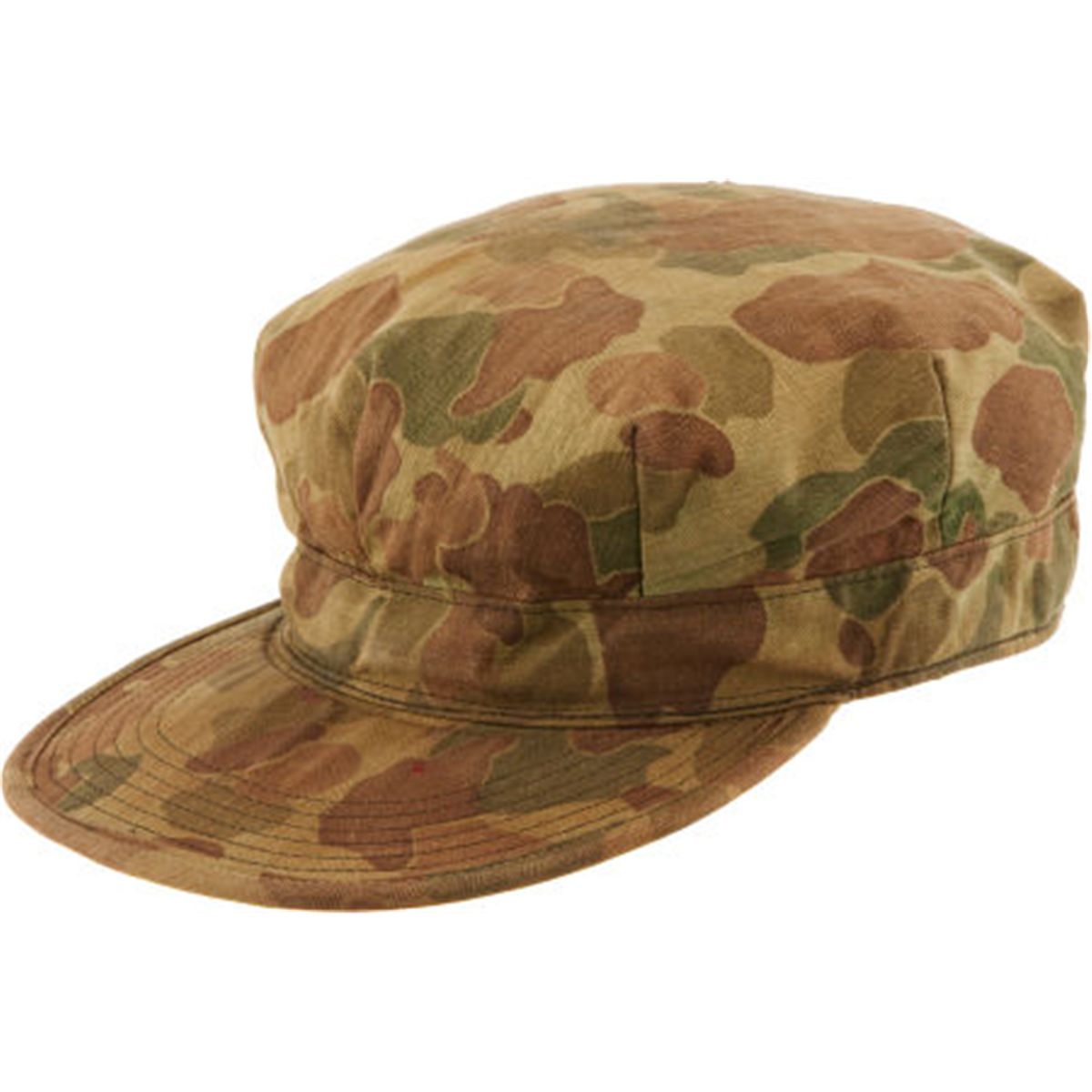 A Cap Related to "The Green Berets." Made of cotton with a camouflage pattern of brown and olive green; worn by Wayne behind the scenes when he directed the 1968 Warner Bros./Seven Arts film that he also starred in.