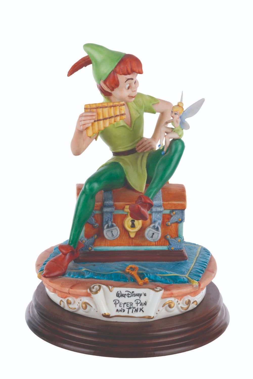 (Capodimonte, 1980s) A porcelain figure of Peter Pan and Tink, sculpted by Enzo Arzenton for the Capodimonte collection. This piece is stamped 910/5000. Measuring 8.5" in diameter x 11" high, the piece is in very good condition.