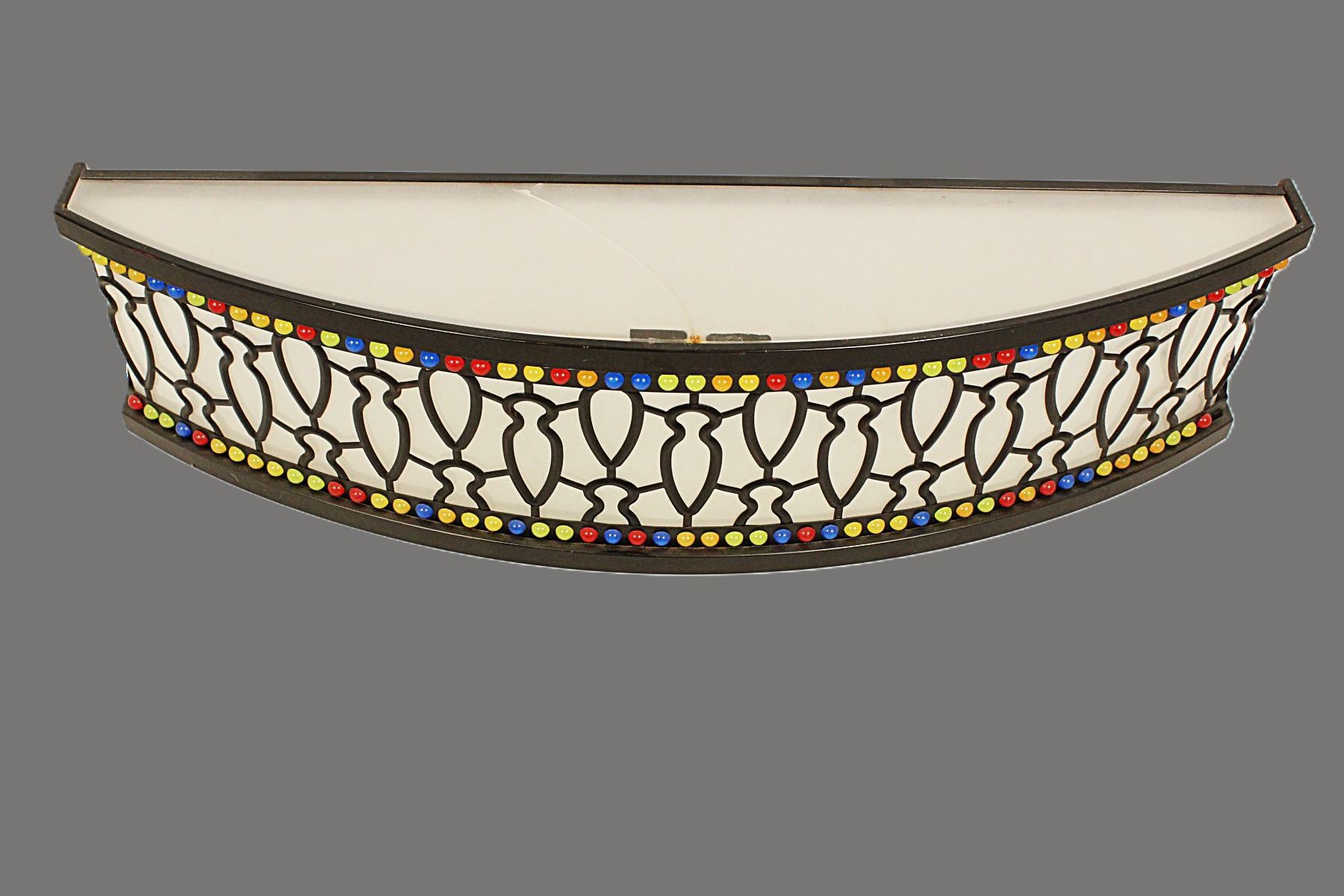 (Walt Disney World) This is a large light fixture originally from the Caribbean Beach Resort at Walt Disney World. They were used above the headboards in the resort rooms as overhead lights. It is missing a couple of the colored caps and the bottom plexiglass is cracked. It measures 40" wide x 10 " tall x 8.5" deep.
