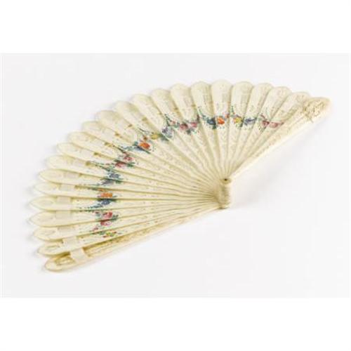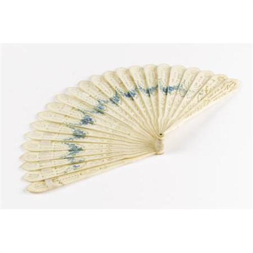 <B>A Carved Ivory Fan<BR></B></I>Unknown maker<BR>Twentieth Century<BR>Unmarked<BR>5.2 inches high x 10 inches wide<BR><BR>The carved and pierced fan painted with a blue and green floral band<BR><BR><BR><b>Shipping:</b> Requires 3rd Party Shipping (<a target="_blank" href="http://www.heritageauctions.com/common/shipping.php">view shipping information</a>)