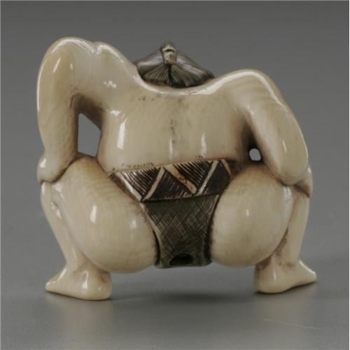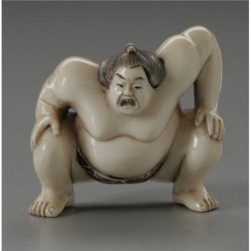 A Carved Ivory Figural Sumo Wrestler Netsuke NR An Ivory Figural Netsuke