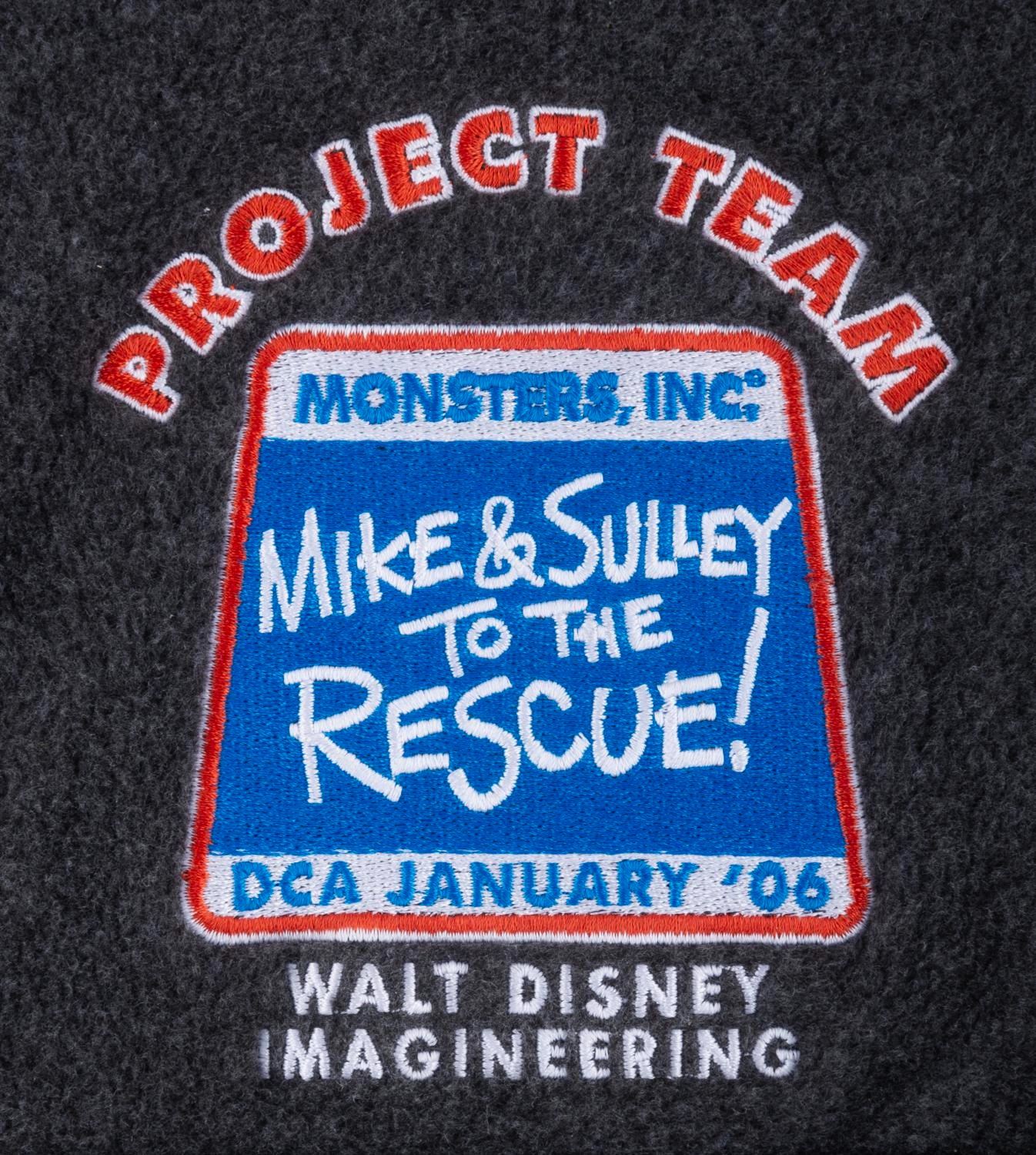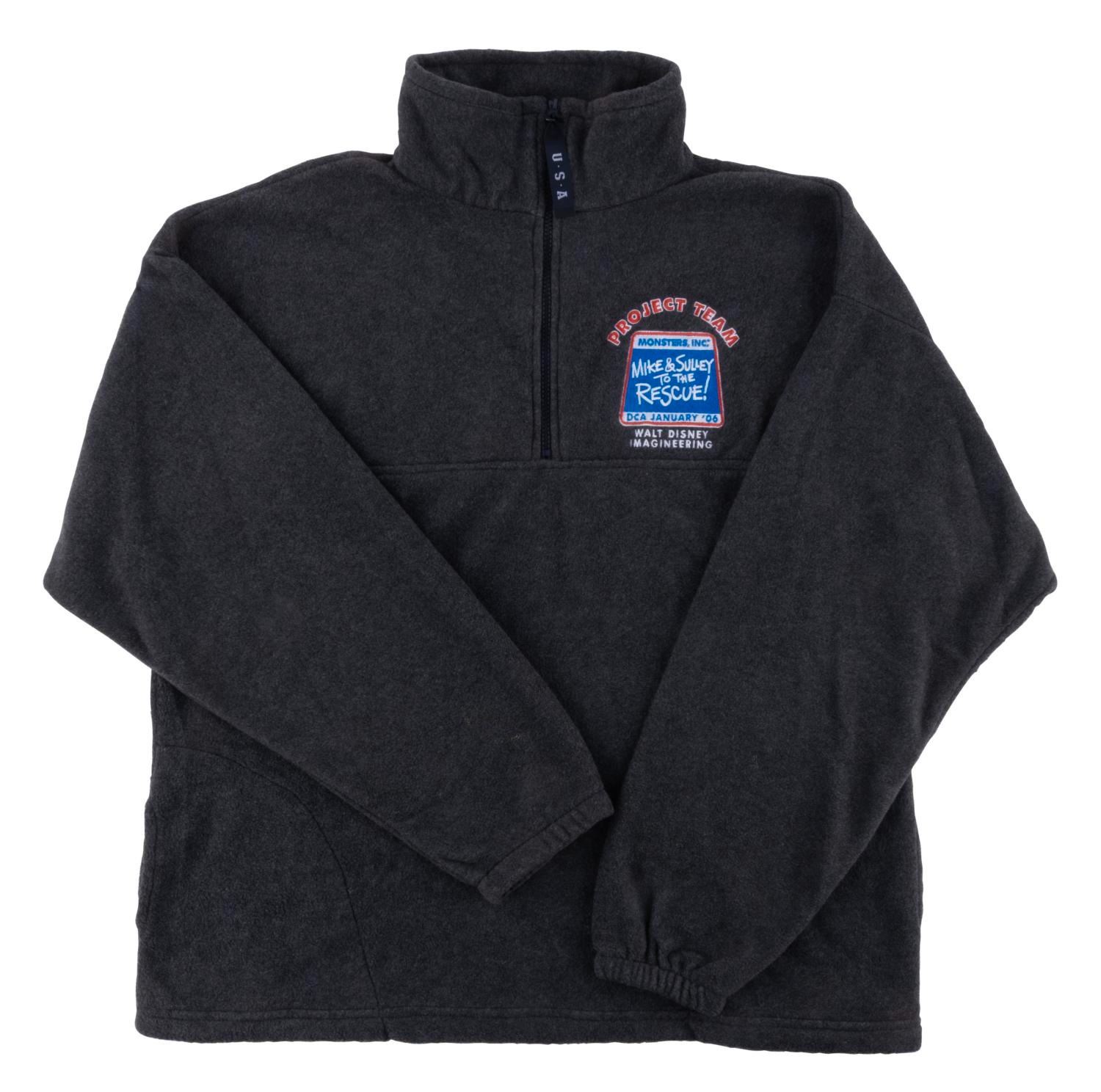 (Disney’s California Adventure, 2006) An Imagineer exclusive Mike & Sulley to the Rescue Fleece Pullover. The"Monsters, Inc." themed attraction replaced the Superstar Limo ride only five years after opening. Labeled a size XL, the polyester pullover is in very good condition.