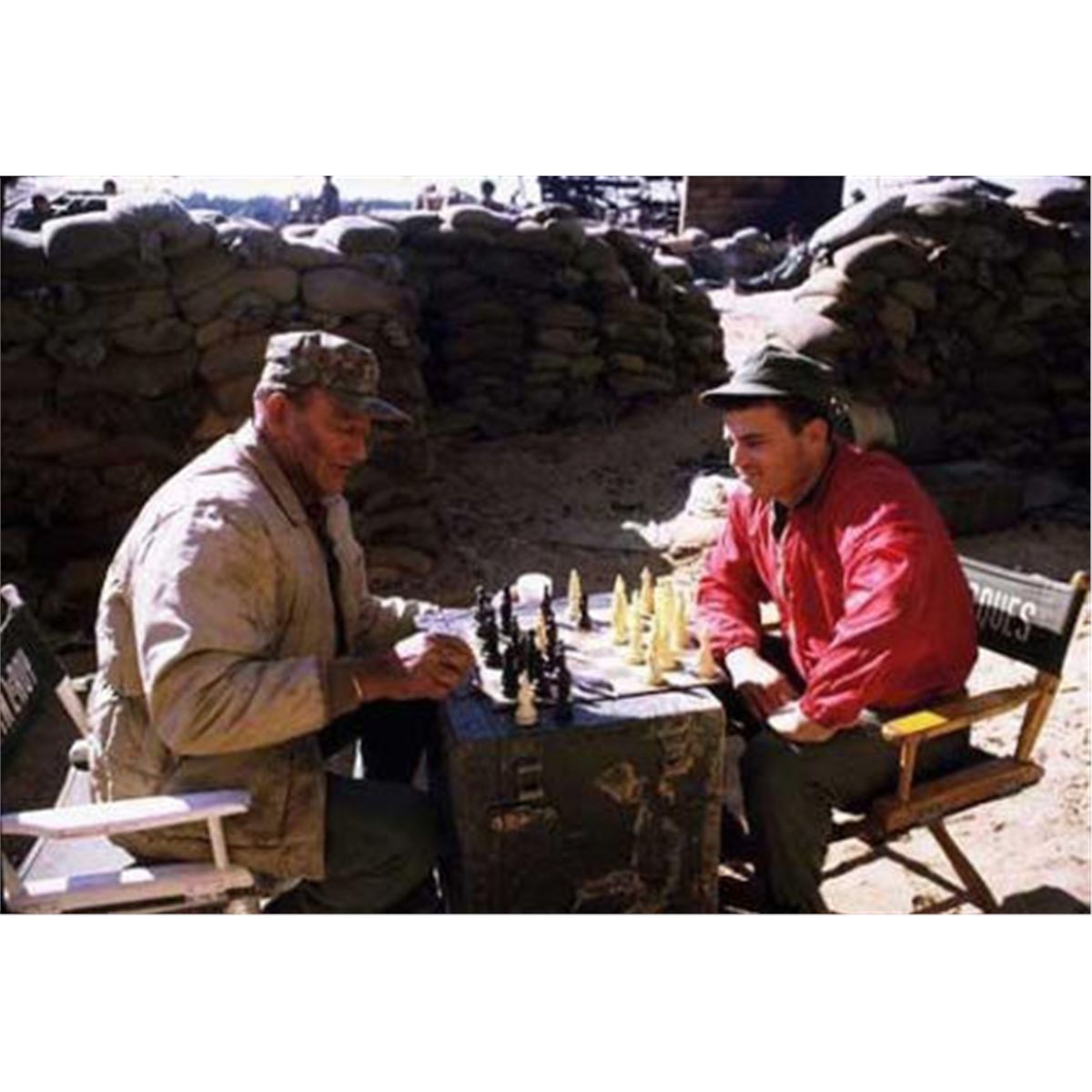 A Ceramic Chess Set, 1979. With a blue and white handpainted board, red and blue matching pieces, bottom of board reads "Atlantic Molo / To Duke / Love Joyce '79." (Please note three pieces have been repaired.)16" x 16" x 1 1/2"Wayne was an avid, lifelong chess player and had many sets throughout his life.