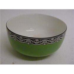 A Cetem Ware fruit bowl, with a green exterior and a black and white border. £30-40