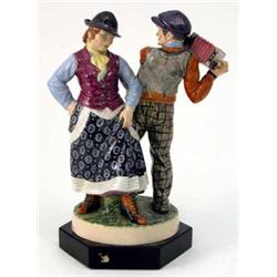 A Charles Vyse figure group, “The Dancing Gypsies”, circa 1936, male playing accordion, his femal...