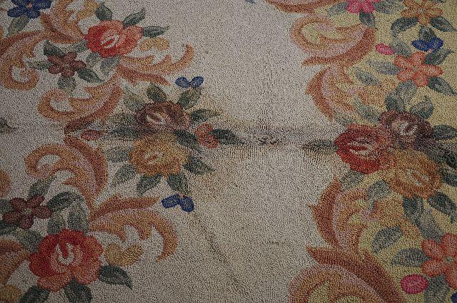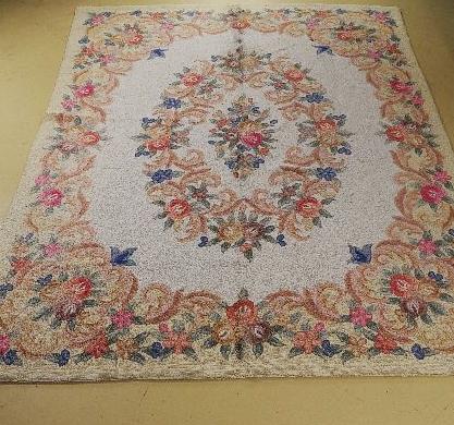 A Chinese Hook Wool Rug. Note Condition: Stains and Holes. 7 ft 11 in x 10 ft 2 in