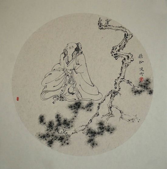 A Chinese Ink Painting "Listening to Pine Breeze" by Su,Jiangang.