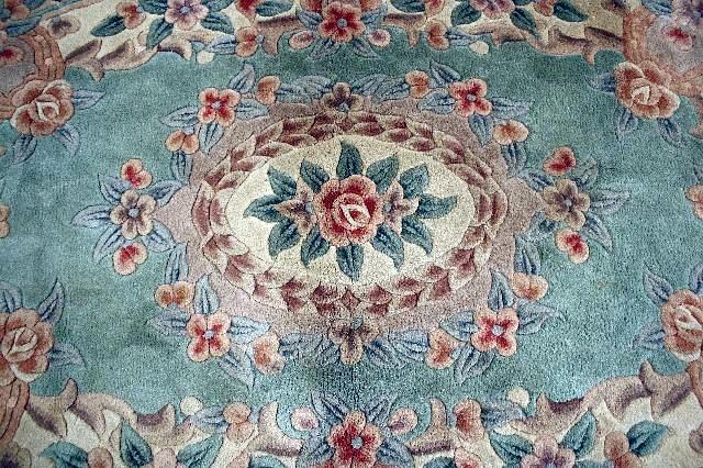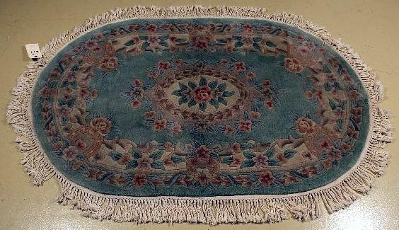 A Chinese Oval Wool Rug with Back Cover, 3 ft 2 in x 5 ft