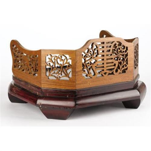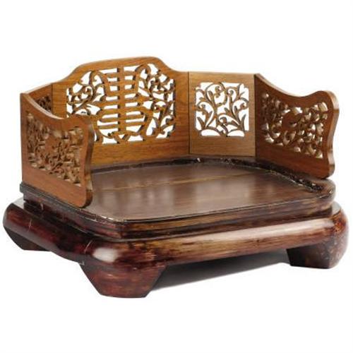 <B>A Chinese Wooden Throne Chair<BR></B></I>Unknown maker<BR>Circa 1900<BR>The chair with a dark stained wood seat with a lighter pierced wood back<BR>Unmarked<BR>10.5 inches high x 17 inches wide<BR><BR><b>Shipping:</b> Requires 3rd Party Shipping (<a target="_blank" href="http://www.heritageauctions.com/common/shipping.php">view shipping information</a>)