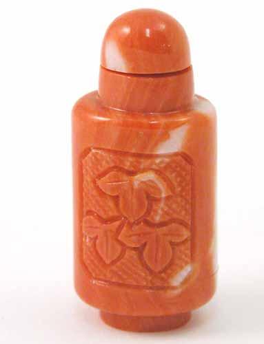 A Chinese coral snuff bottle, carved with three leaves, 1.5ins £50-80