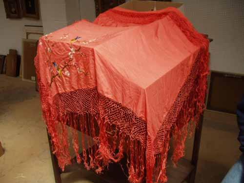 A Chinese orange silk shawl, and two other shawls. £80-120