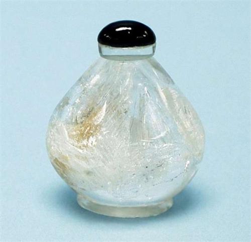 A Chinese rock crystal snuff bottle. With cabachon black glass stopper. 200-250