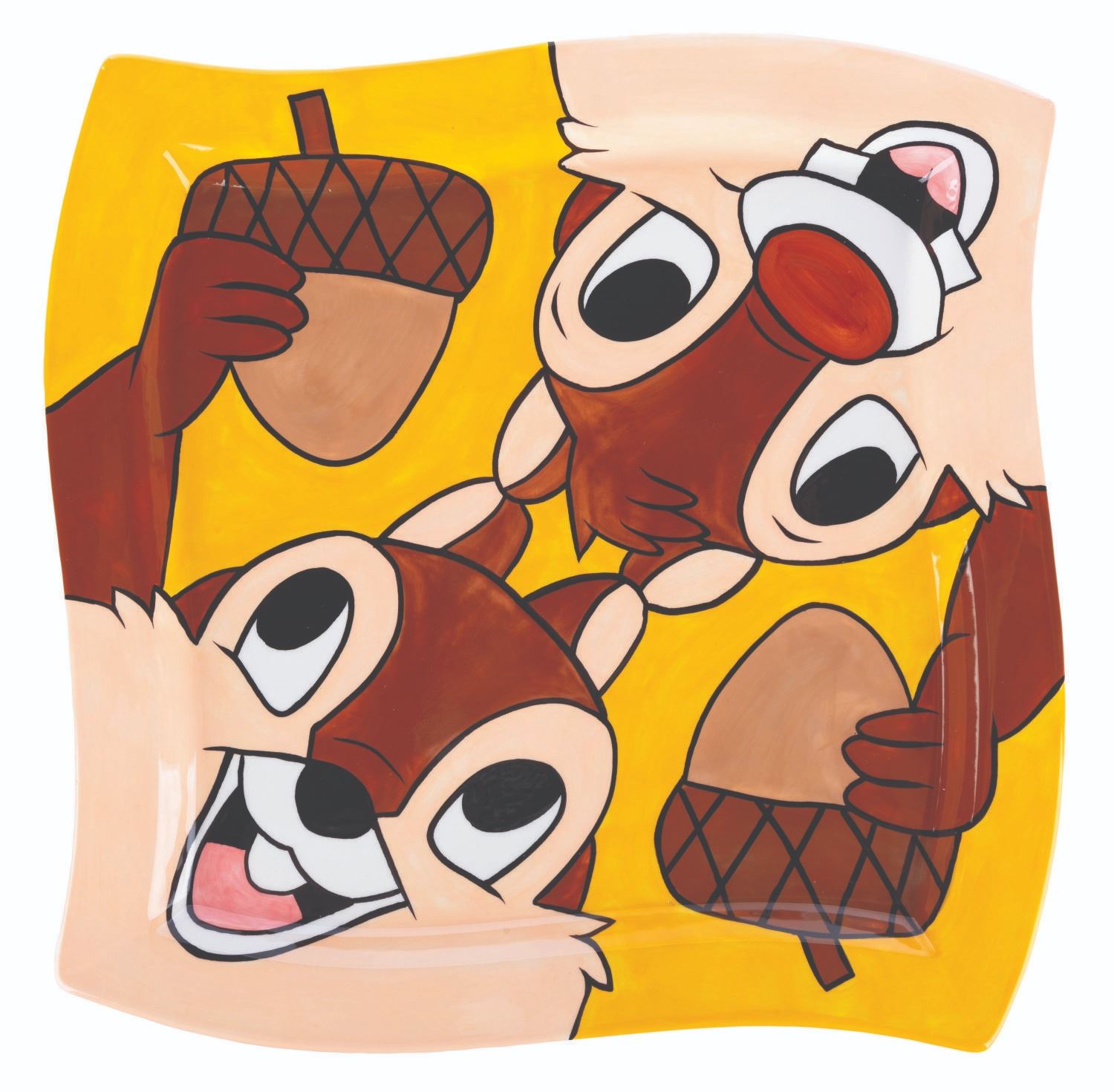 (Disney, 2015) A Disney Auctions charger plate featuring chipmunk pals Chip and Dale holding acorns. Released in a limited edition of 250, the ceramic plate measures 14.5" x 14.5" and is in very good condition with minor production flaws and spots of paint loss.