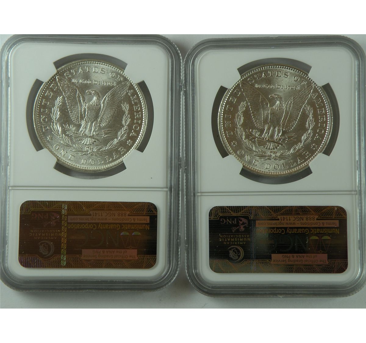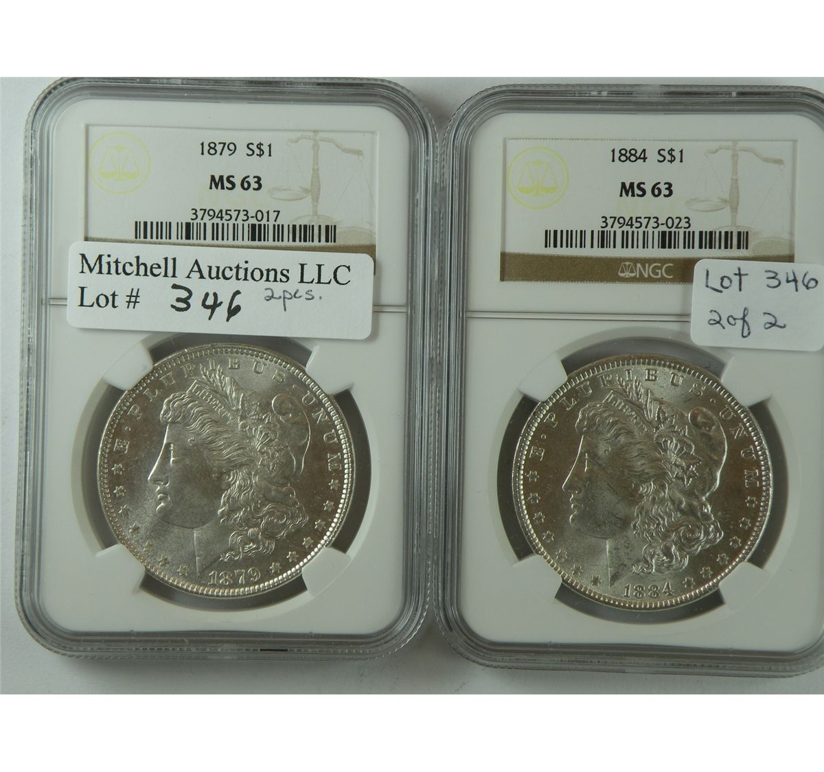 A Choice Philadelphia Mint Morgan Dollar pair: 1879, 1884. Both are NGC MS63 and both with matching color and lustre. The former exhibits strong claims to a higher grade. 2 coins. Est.$110