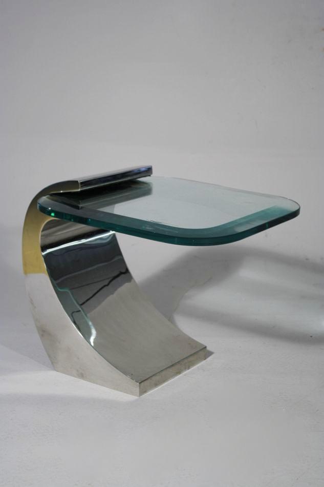 A Chrome and Glass Side Table in the Style of Karl Springer.