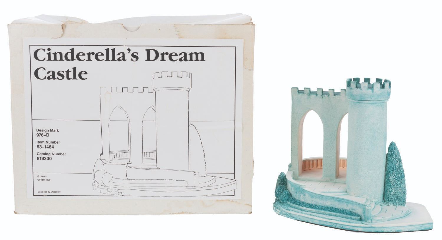 (Goebel, 1990) A "Cinderella" figurine titled Cinderella's Dream Castle designed by renowned miniaturist Olszewski. Measuring 6.5” x 8” x 6” tall, the handcrafted and hand-painted resin piece is in very good condition with light scratches.