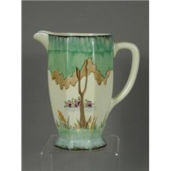 A Clarice Cliff Athens jugs, decorated with trees and flowers, base with signature mark, 15.5cm high Est. 150/200