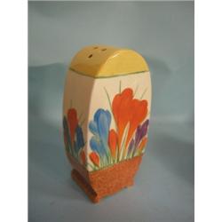 A Clarice Cliff, Crocus pattern Sugar Shaker, 5" high....