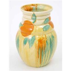 A Clarice Cliff Delicia Oranges and Lemons vase, fruit and leaf design with running glaze-effects...