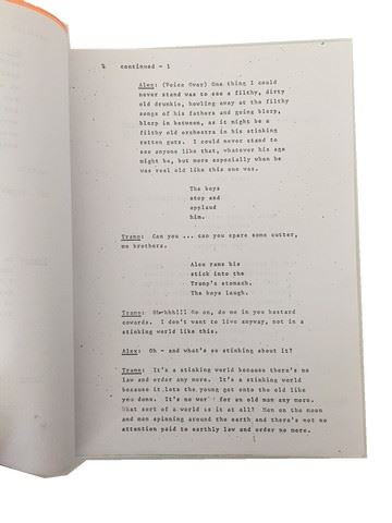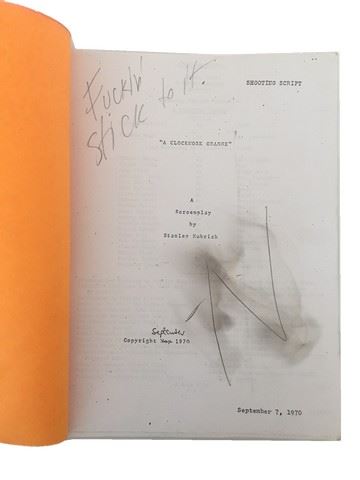 "A Clockwork Orange" by Stanley Kubrick (September 1970) official, original shooting script. (11"x9")