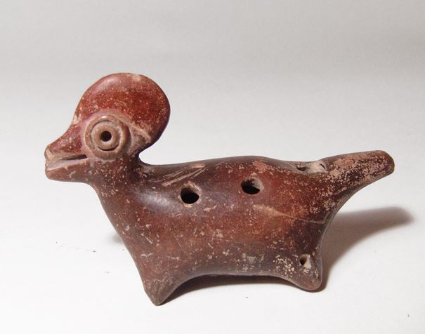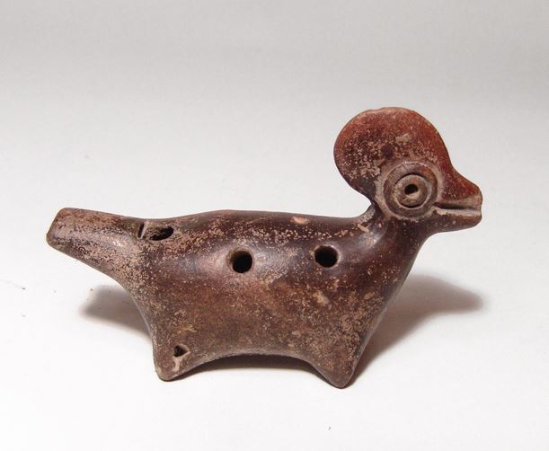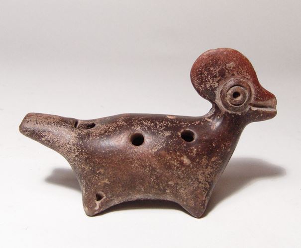 A Colima crested bird whistle, West Mexico, Late Pre-classic to Early Classic, c. 200 BC - AD 500, with nicely burnished surfaces and dark brown slip. L: 3 1/2 in. Ex Dr. John Hilsabeck estate, Orange County.