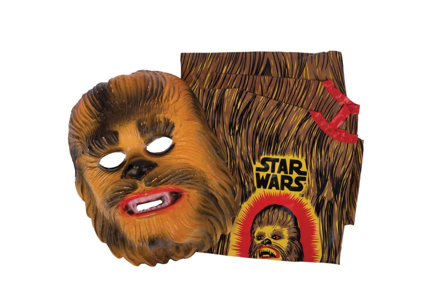 (Ben Cooper, 1977,1983) A collection of (5) vintage children's costumes and masks of characters from the original Star Wars trilogy. Among the lot is one C-3PO in box and (4) loose costumes with masks - Darth Vader, C-3PO, Chewbacca, and Wicket the Ewok. Costumes measurements include C-3PO (large), Darth Vader (small), Chewbacca (medium), and Wicket (medium). The masks and costumes are in very good to fine condition, with only minor cracks and slight wear. The C-3PO box measures 11"x8.5"x3.5" and is in very good condition, exhibiting creases and edge wear throughout.