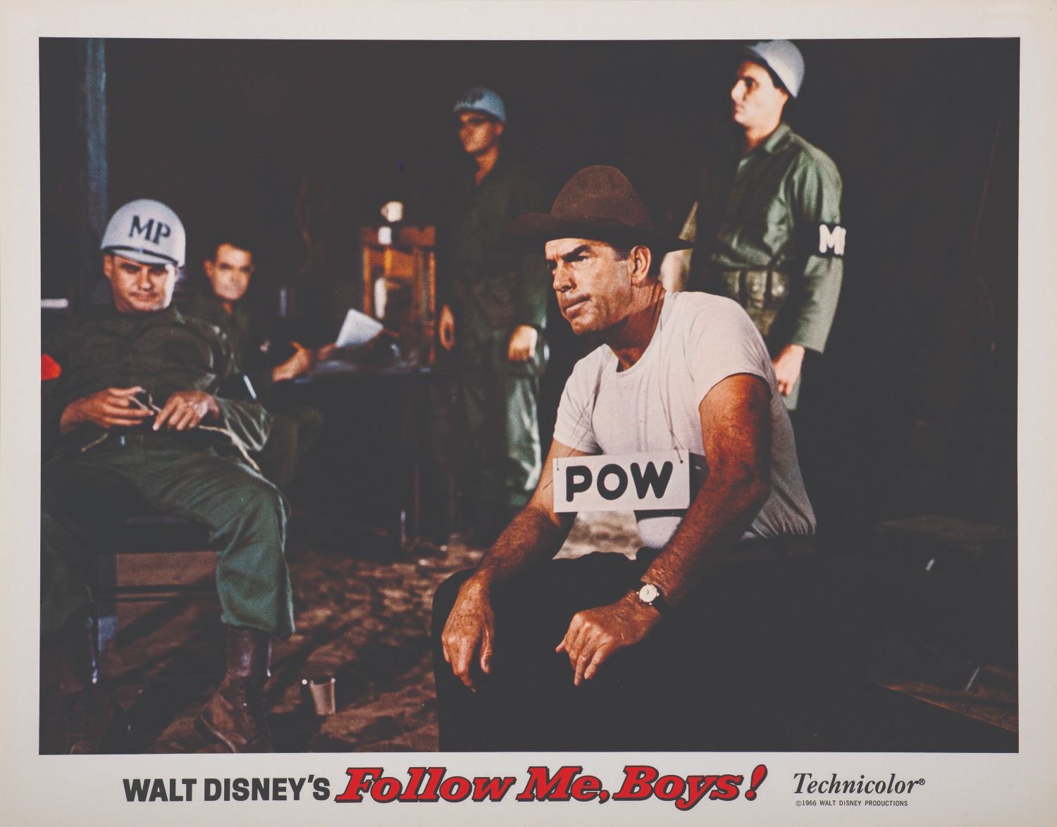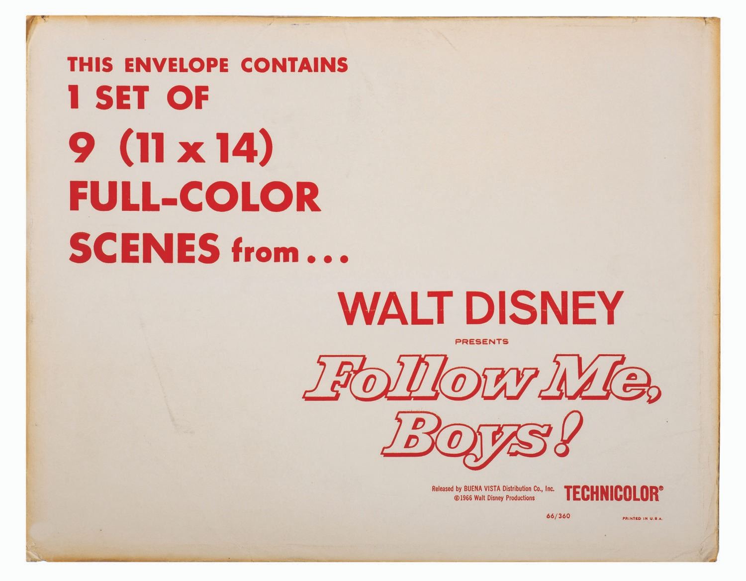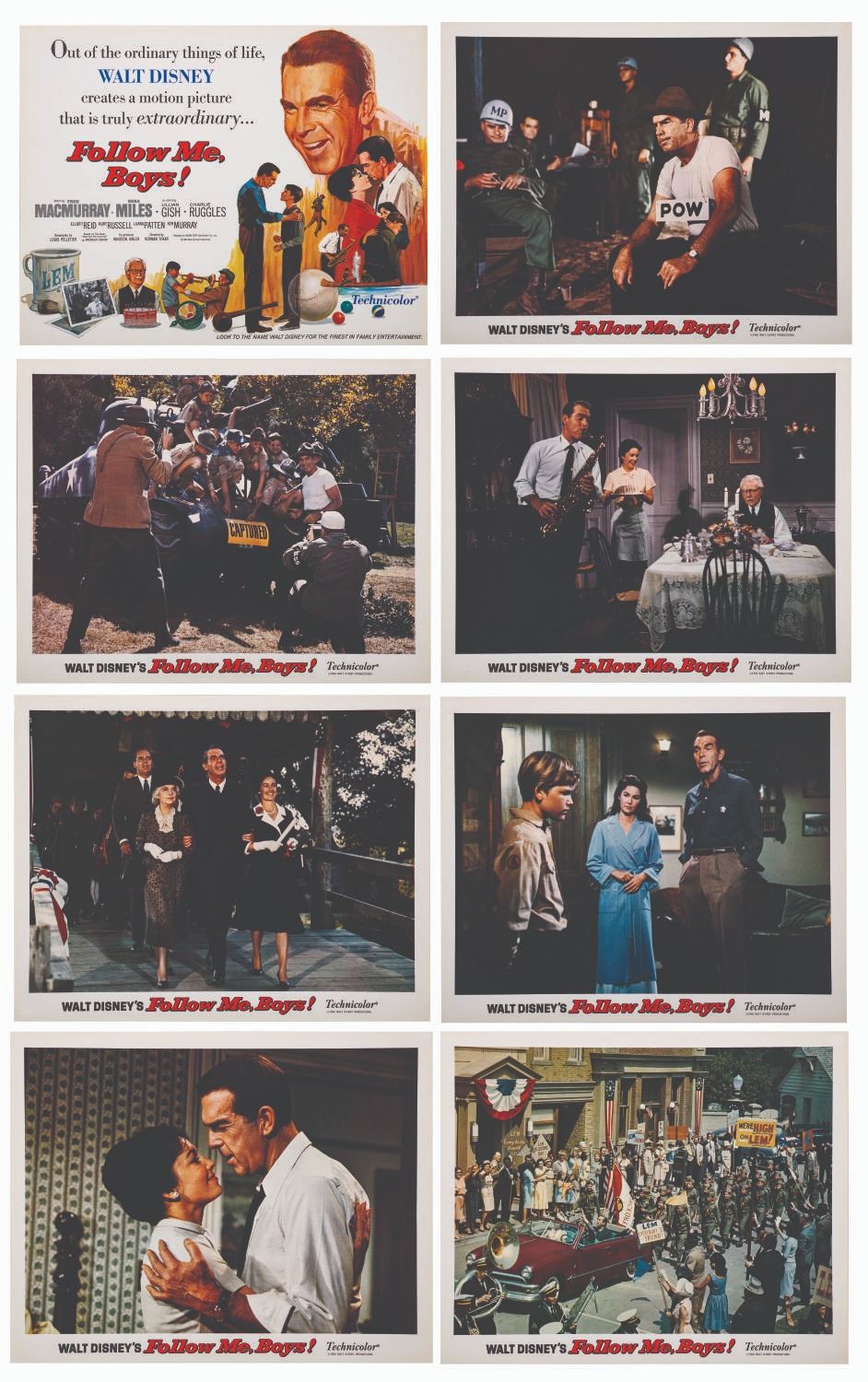 (Disney, 1966) A collection of 9 original release lobby cards for Walt Disney's 1966 film "Follow Me Boys" starring Fred MacMurray and Vera Miles. Measuring 11" x 14", the cards are in fine condition.