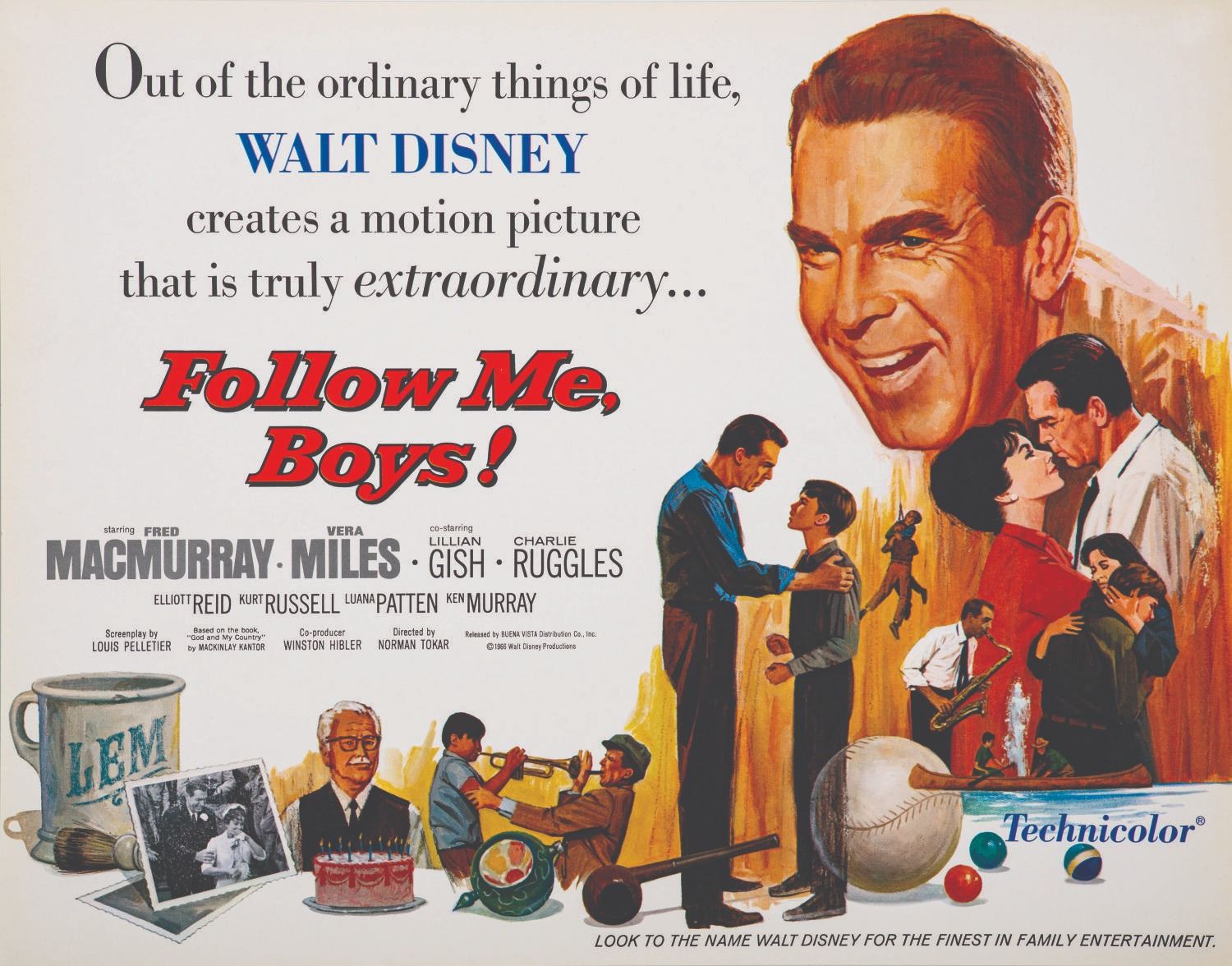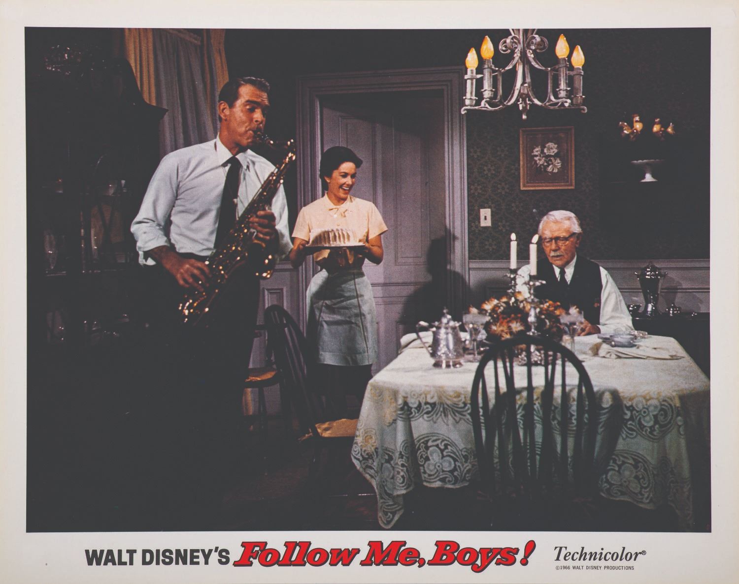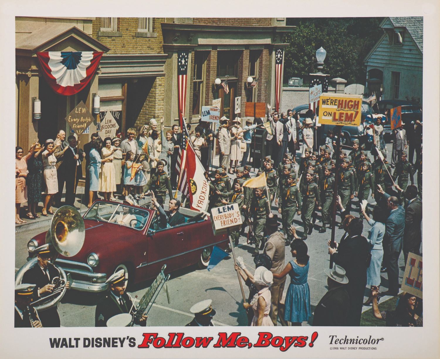 (Disney, 1966) A collection of 9 original release lobby cards for Walt Disney's 1966 film "Follow Me Boys" starring Fred MacMurray and Vera Miles. Measuring 11" x 14", the cards are in fine condition.