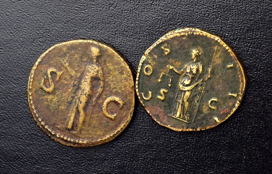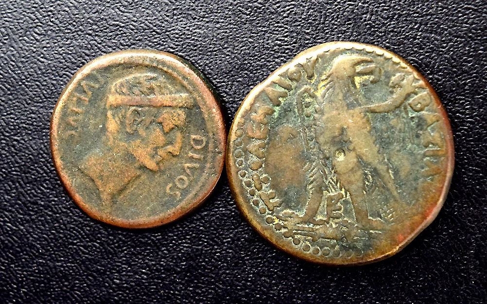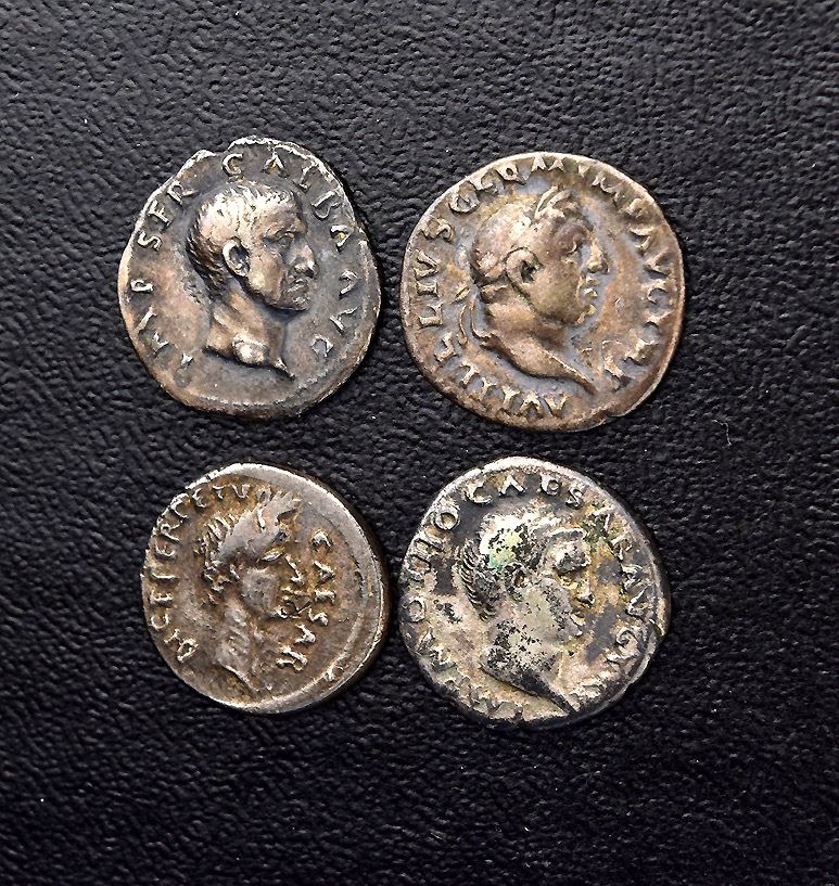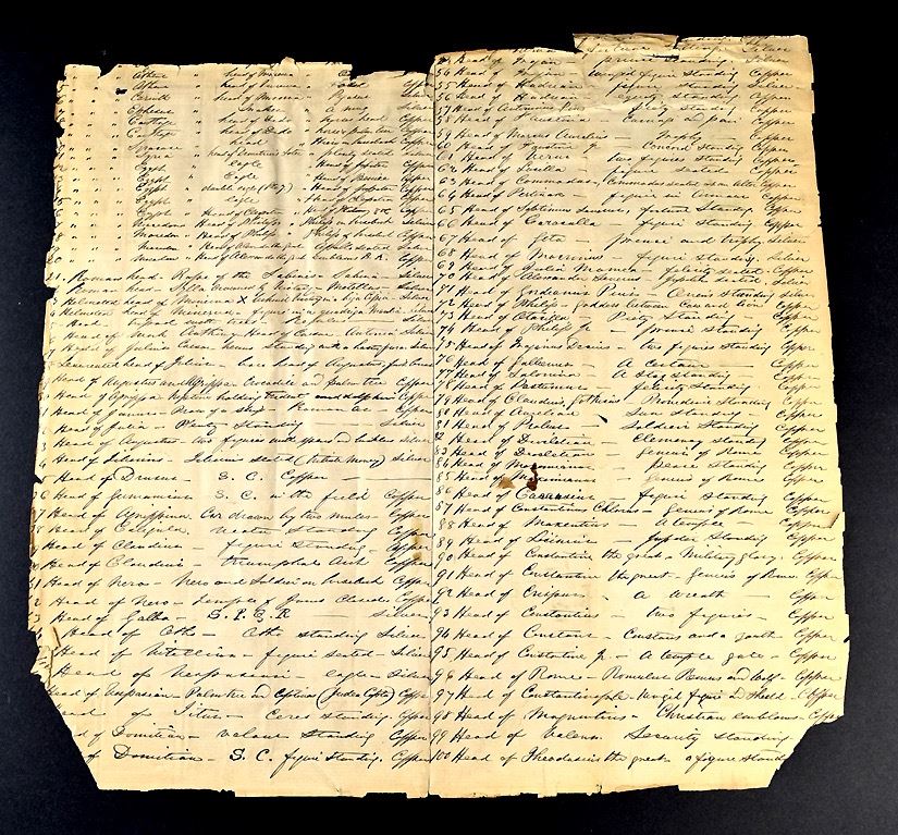 The best of the group is a choice lifetime portrait denarius of Julius Caesar. There are also denarii of Mark Anthony with Caesar, Augustus, Tiberius, Galba, Otho and Vitellius; various bronzes, large and small; Greek coins in silver and bronze; and a few Republican denarii. According to the somewhat frayed and damaged inventory list (included), all 100 squares were originally filled, so seventeen coins have gone missing over the last century and a half.